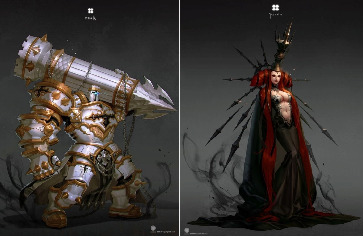 Художник-дизайнер из Кореи, известный в Сети под именем Soo.K, нарисовал серию шахматных фигур в неожиданных концептуальных образах, придав каждой вызывающую воинственность. Глядя на эти яркие арты, кажется, что король, королева, слон, ладья, конь и пешки, превращённые в людей, готовы прямо сейчас поставить вам шах и мат и заодно безжалостно перебить всех своих врагов.