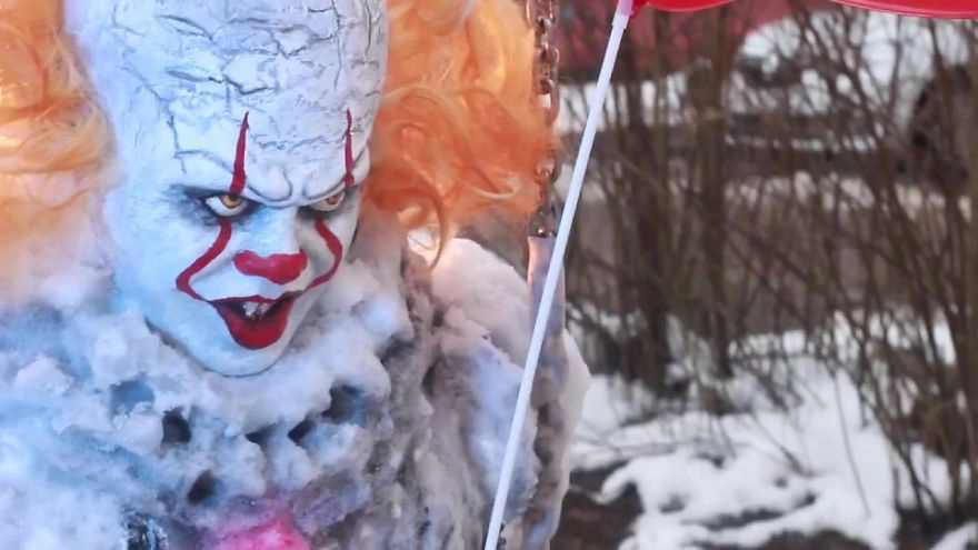 Русский художник Александр Савский слепил очень необычного снеговика. Вернее, очень жуткого. Снежный Пеннивайз — персонаж произведения Стивена Кинга «Оно» и одноименных фильмов появился во дворе обычного жилого дома. Александр решил принять участие в конкурсе снеговиков и выбрал для своей снежной скульптуры образ страшного клоуна. Трудиться над снеговиком пришлось несколько часов, а перед этим ждать идеальных погодных условий, но результат явно стоил того. Клоун на качелях выглядит впечатляюще, главное, чтобы он ни у кого не вызвал сердечный приступ.