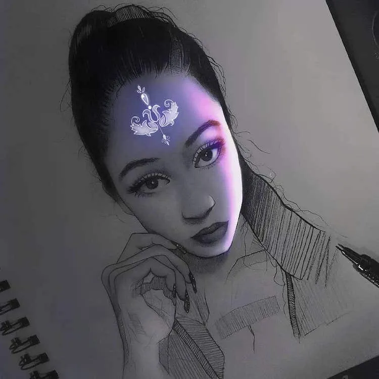 Художник Энрике Бернал создает потрясающие портреты девушек, которые будто светятся изнутри. Сначала он рисует их карандашом, а затем использует приложение под названием Medibang Paint, чтобы добавить своим творениям необычное цифровое сияние, которое имитирует флуоресцентное свечение.