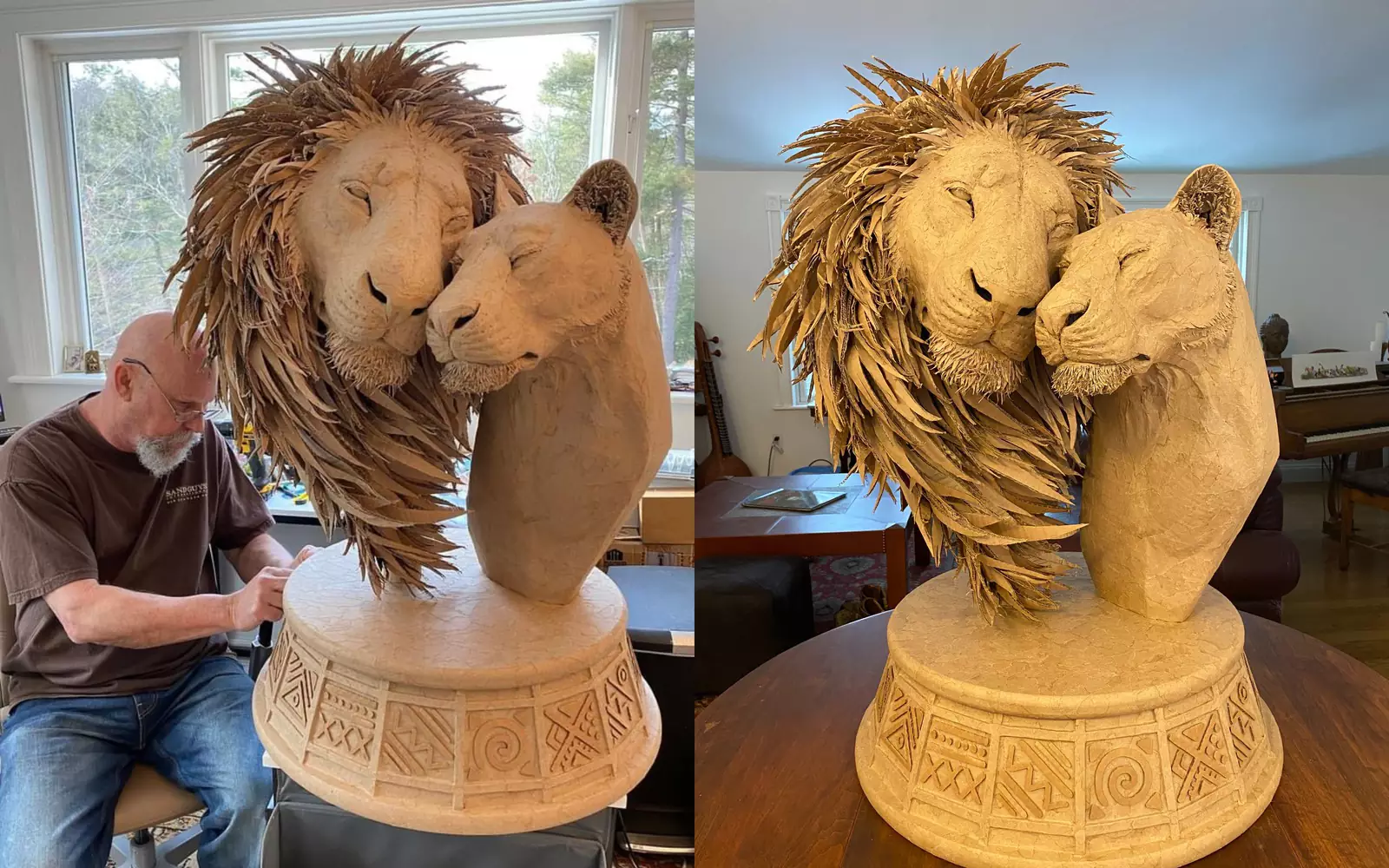 «Мы посмотрели несколько замечательных фильмов и видеороликов, в которых показывалось, насколько ласковыми и нежными могут быть львы в прайде, и это натолкнуло нас на мысль о создании скульптуры обнимающихся животных», — рассказали Сью и Энди изданию The Epoch Times.