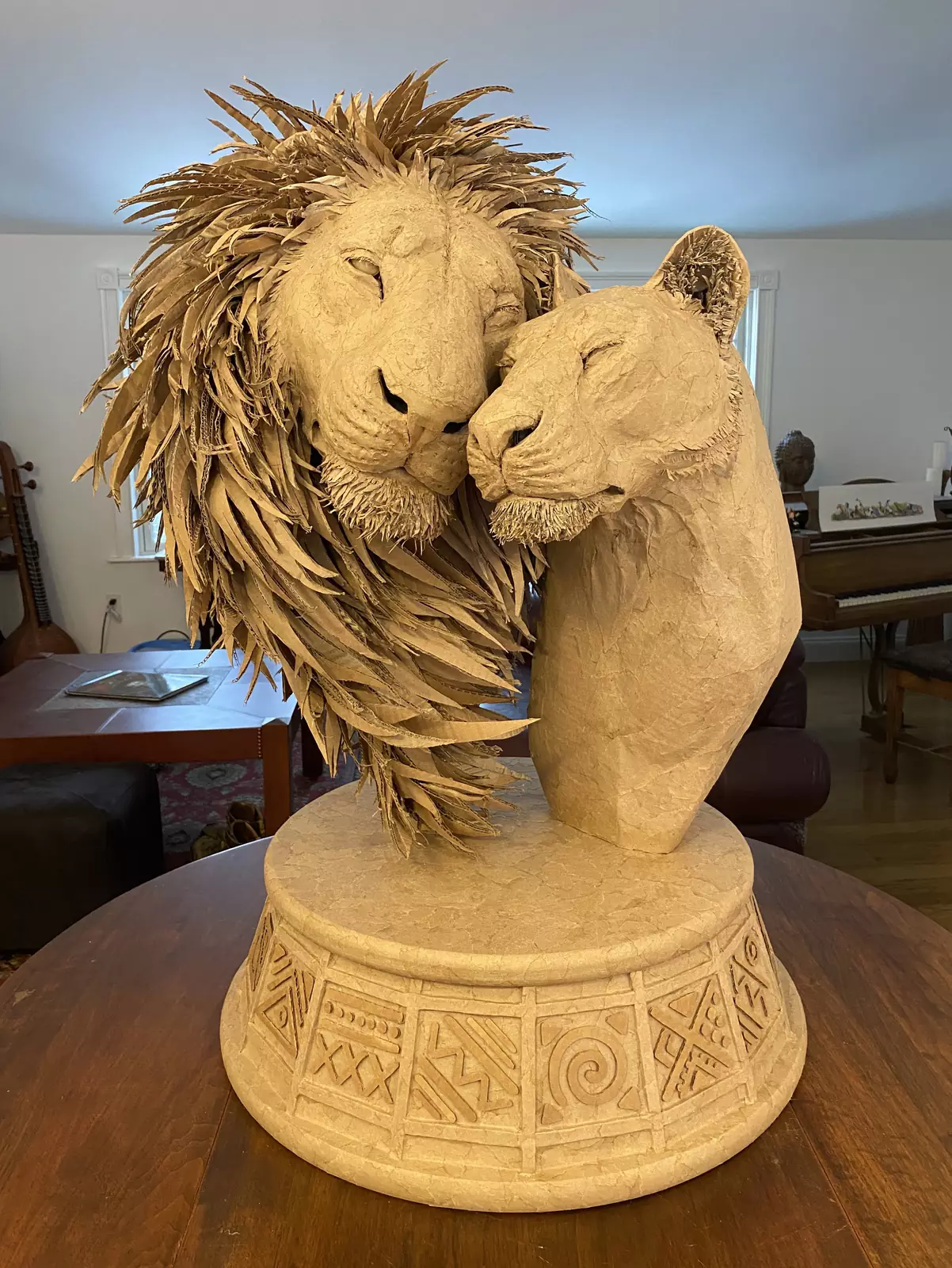 Своей работой Сью и Энди хотели отдать дань уважения природе и показать связь между недостатком природных ресурсов и сокращением численности диких животных. Чтобы соединить части необычной скульптуры, художники использовали пистолеты с горячим клеем и метод сборки картона, похожий на сборку пазла. Шерсть львов была сделана из тонких кусочков бумаги, чтобы она выглядела как можно более реалистичной.