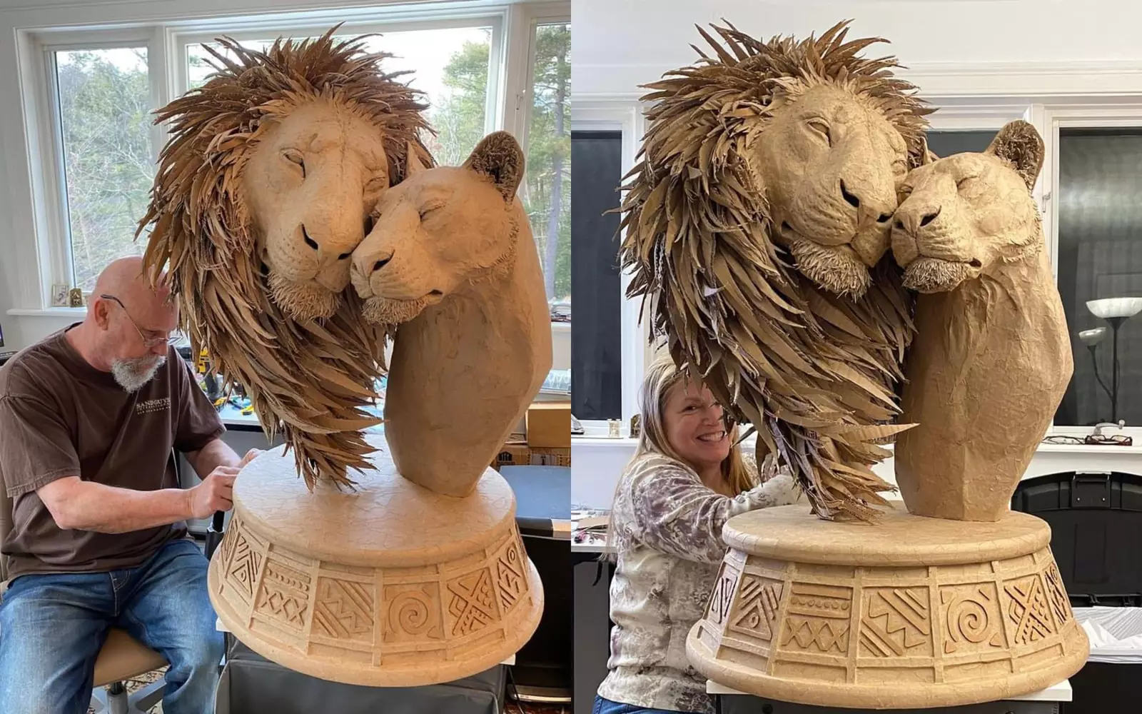 Талантливые художники из Нью-Йорка Сью Беатрис и Энди Гертлер из тех людей, кто способен любую ерунду превратить в произведение искусства. Недавно они сделали невероятно реалистичную скульптуру двух обнимающихся львов, используя только старый картон, клей и свое мастерство.