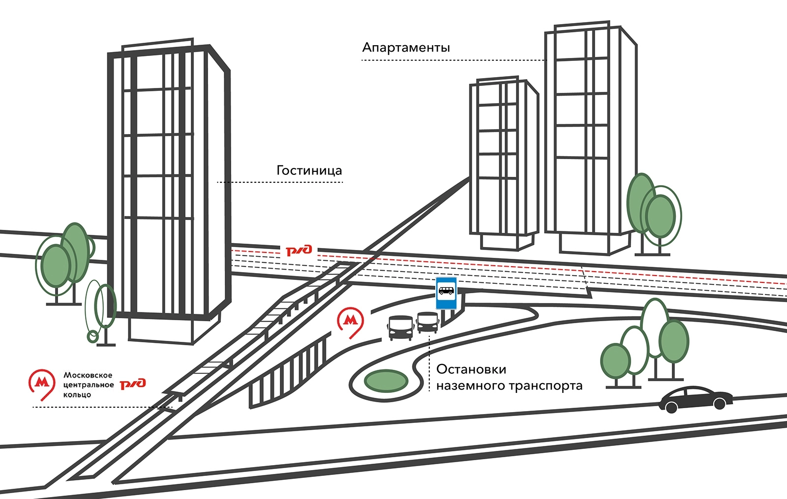 В состав транспортно-пересадочных узлов войдут всевозможные административные, торговые, социально-культурные и гостиничные площади. Кроме того, рядом с такими ТПУ расположатся парковки, где можно будет спокойно оставить свой автомобиль и продолжить поездку на метро, автобусе или электричке.