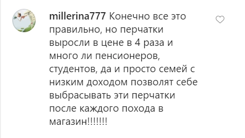 Некоторые высказались о том, что ежедневная покупка одноразовых перчаток и масок ощутимо ударила по семейному бюджету.