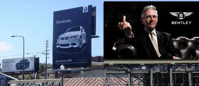 В Сети к противостоянию присоседился и Bentley с так называемой рекламой с «факом» — билбордом, якобы рекламирующим автомобиль компании. Несмотря на то что автопроизводитель назвал это фейком, эффект реклама возымела.