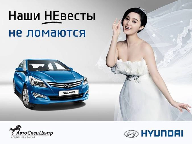 Отечественный автогигант выдал креативный баннер с изображением девушки азиатской наружности в свадебном платье и слоганом: «Время расстаться с НЕ вестой».