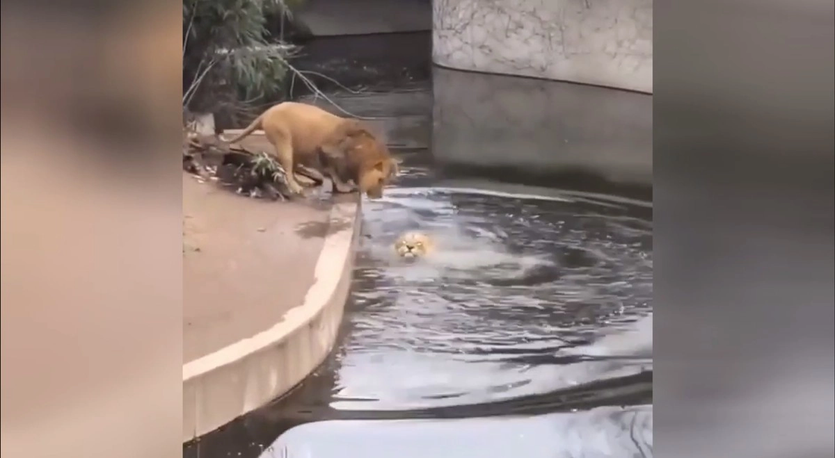 И у львов бывают неудачи: царь зверей эпично навернулся в бассейн