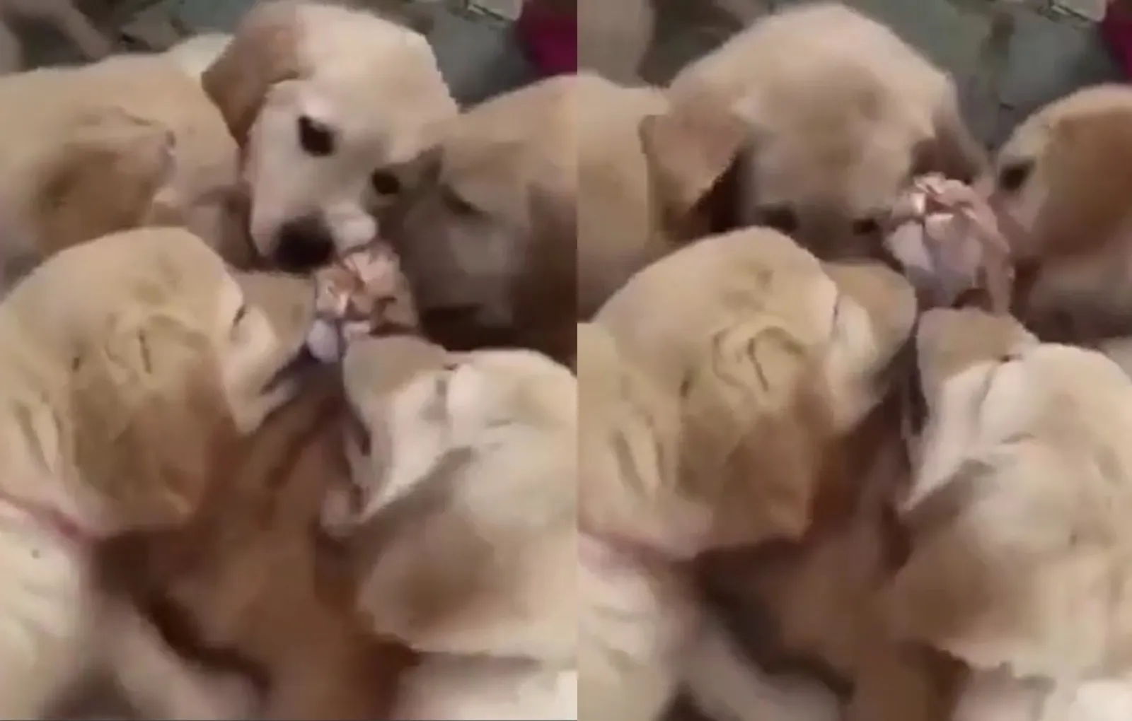 Щеночки — очень милые создания, которые готовы дарить любовь и ласку всем, кого видят. Иногда они так этим увлекаются, что одаренного их любовью приходится срочно спасать, как котейку из этого видео.