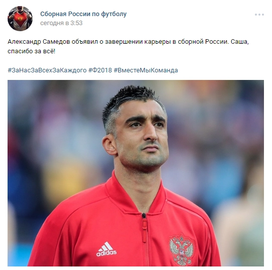 Полузащитник сборной России и московского «Спартака» Александр Самедов и 38-летний ветеран «ЦСКА» Сергей Игнашевич объявили о завершении карьеры. Если первый прекращает выступления только в составе национальной команды, то многоопытный лидер «армейской» обороны совсем прощается с профессиональным футболом.