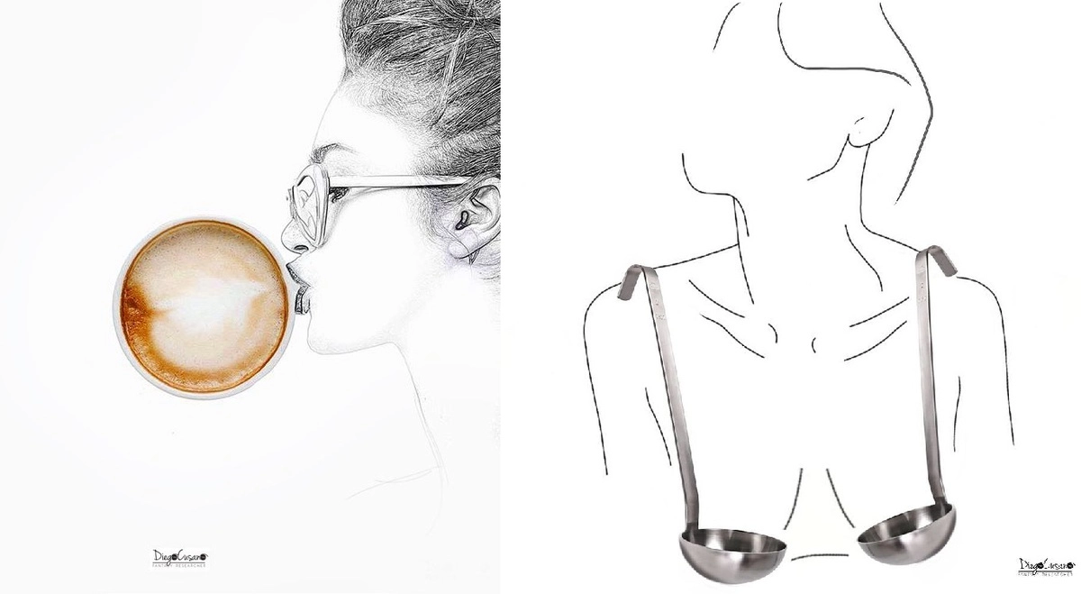 Каждый художник ищет свою фишку, благодаря которой он может выделиться среди тысяч таких же, как он. Итальянский иллюстратор и музыкант Диего Кузано (Diego Cusano) в своём творчестве вдохновляется играми разума и создаёт странные и ироничные рисунки, используя в своём творчестве обыденные предметы - такие, как еда, кухонные и офисные принадлежности, косметика и всё, на что хватит фантазии. Сам художник любит называть себя исследователем воображения и говорить, что его главная цель - заставить зрителя улыбаться. Давайте посмотрим на его забавные и остроумные работы.