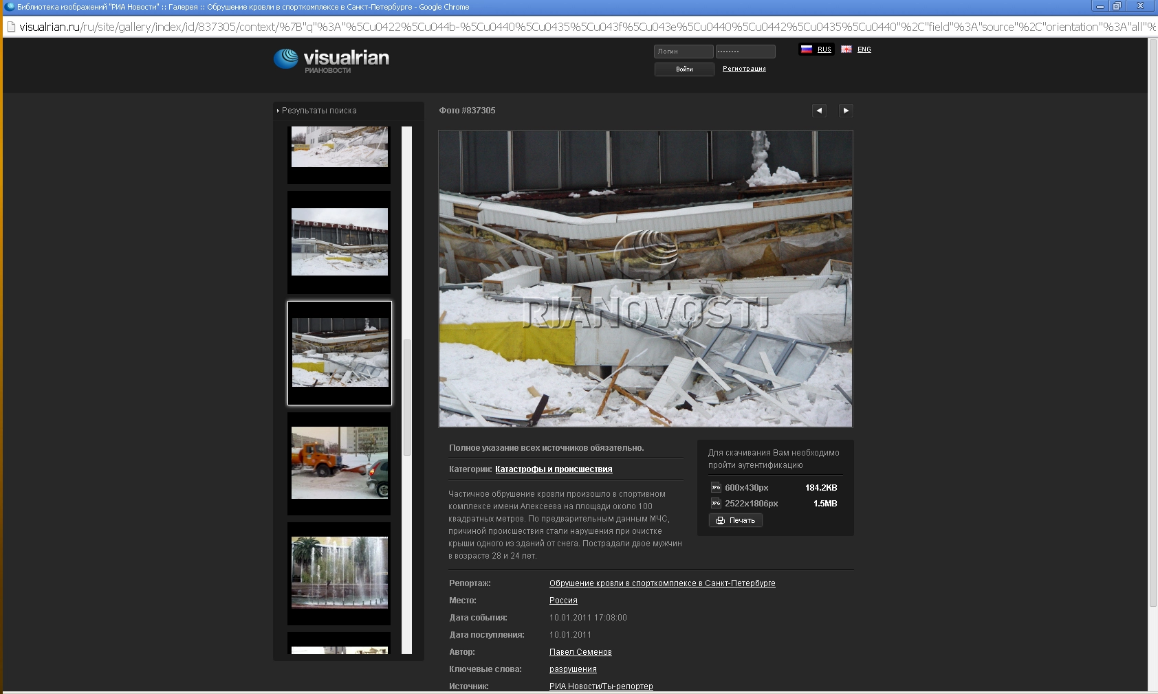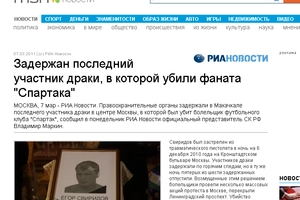 Я не стал исключением, многие мои фото и видеоработы РИА Новости выкладывало на продажу, зачастую даже не подписав автора (согласно закону об авторском праве автор имеет право на имя). В итоге несколько своих фотокарточек отправленных на проект ТЫ-Репортёр я обнаружил у самых ярых поборников авторского права. На сайте принадлежащем компании Майкрософт. Вот один пример, фотокарточка с панихиды по Егору Свиридову в нарушение моего права на имя подписанная (С) rian.ru