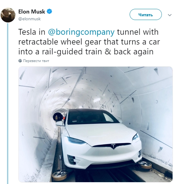 Основатель Tesla и SpaceX рассказал на презентации, которая транслировалась 19 декабря на сайте другой его компании — The Boring Company, что для быстрого проезда по тоннелю автомобили оснастят специальными колесами, которые смогут выдвигаться и убираться при необходимости.