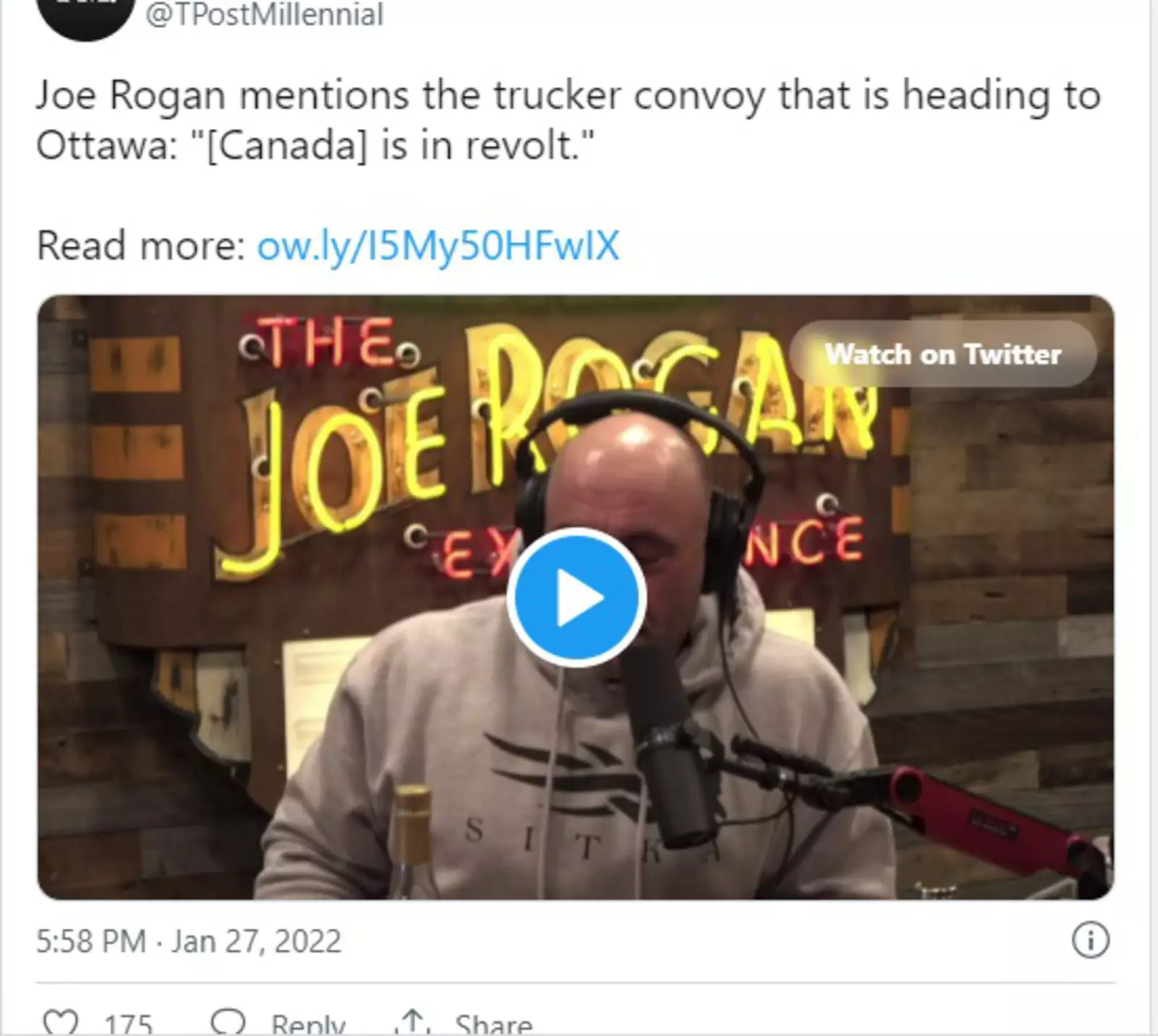 Дискуссия на международном уровне развернулась вокруг конвоя канадских дальнобойщиков, после того как друг Илона Маска ведущий подкастов Джо Роган показал видеоролик об акции на своем канале The Joe Rogan Experience.