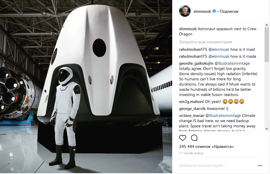 Пока никаких подробностей глава SpaceX не давал, но по внешнему виду легкого скафандра можно предположить, что он вряд ли рассчитан для работы в открытом космосе. Скорее, в нем можно будет совершать полеты на космическом корабле Dragon и перемещаться из капсулы корабля на МКС.