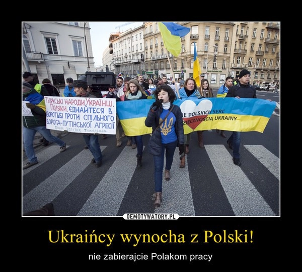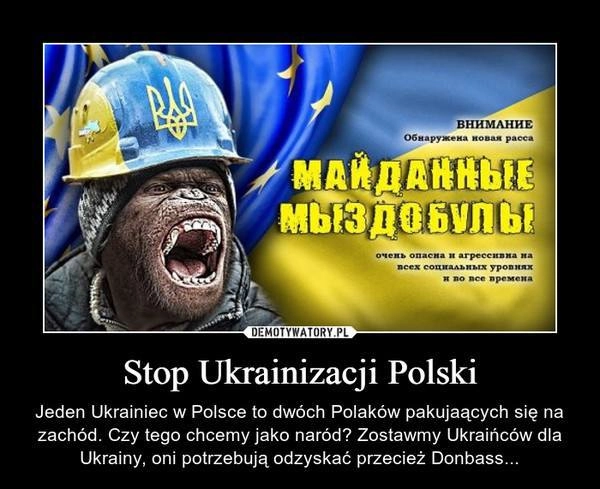 Демотиватор: «Стоп украинизации Польши. Один украинец в Польше — это два поляка, пакующих вещи на Запад. Разве этого мы хотим как нация? Оставим украинцев для Украины, им ведь нужно вернуть Донбасс»
