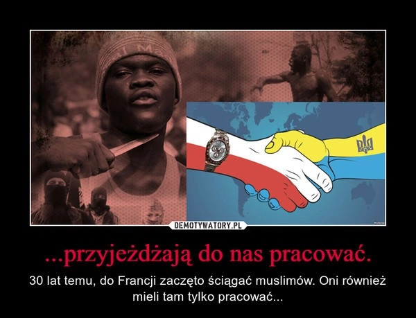 Демотиватор: «Они приезжают к нам работать. 30 лет назад во Францию начали завозить мусульман. Они тоже должны были там только работать...»