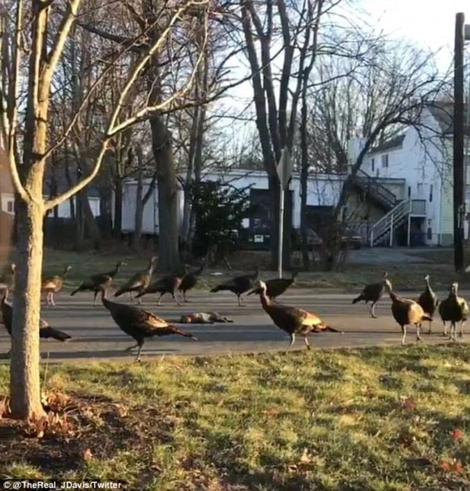 Житель Бостона выложил в Twitter странное видео, на котором 18 индеек как заколдованные ходят вокруг мёртвого кота. Автор ролика предположил, что индейки пытаются оживить животное, подарив ему «десятую жизнь».