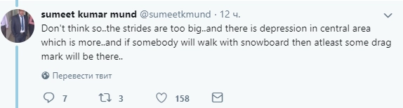 «Не думаю… След слишком велик для снегоступа, и в его центре большое углубление… А если бы это был сноуборд, то за ним осталась бы трасса».