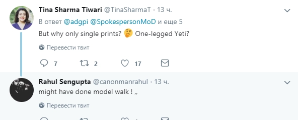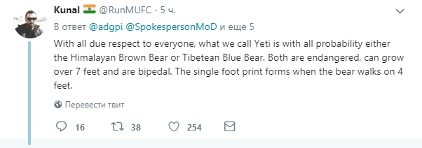 Тем не менее, сообщением о находке поделились более пяти тысяч человек. Официальный представитель вооруженных сил сообщил Times of India, что предполагаемые свидетельства существования йети «переданы для научной оценки».