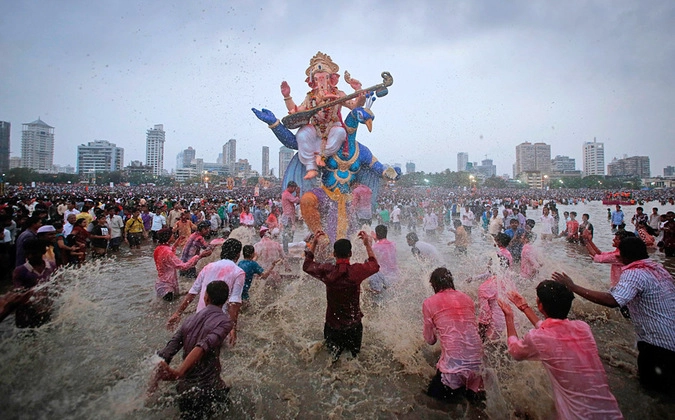 В некоторых частях страны принято лепить из глины новые статуи Ганеши, а старые опускать в реки. Также паломники придают воде тысячи других предметов так или иначе, связанных с почитанием бога с головой слона.