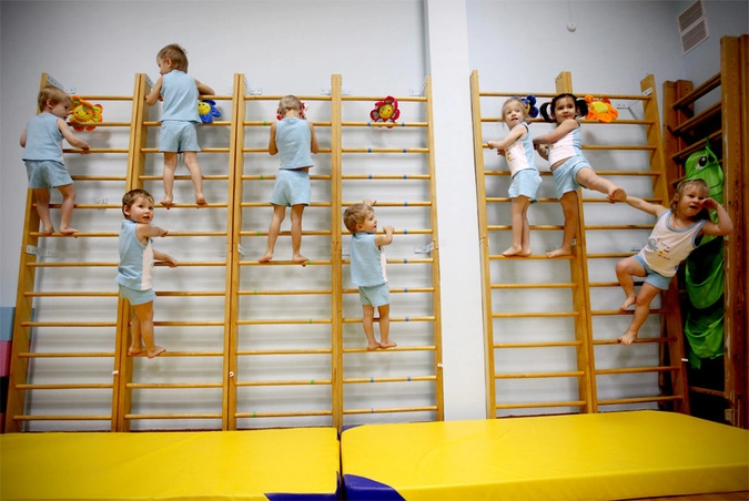 Воспитанники детского дома №3 в микрорайоне Деревяницы Великого Новгорода во время занятия физкультурой. © Константин Чалабов/РИА Новости