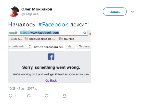При попытке зайти на страницу пользователи Facebook видели сообщение: «Извините, что-то пошло не так. Мы работаем над проблемой и постараемся решить ее как можно скорее».