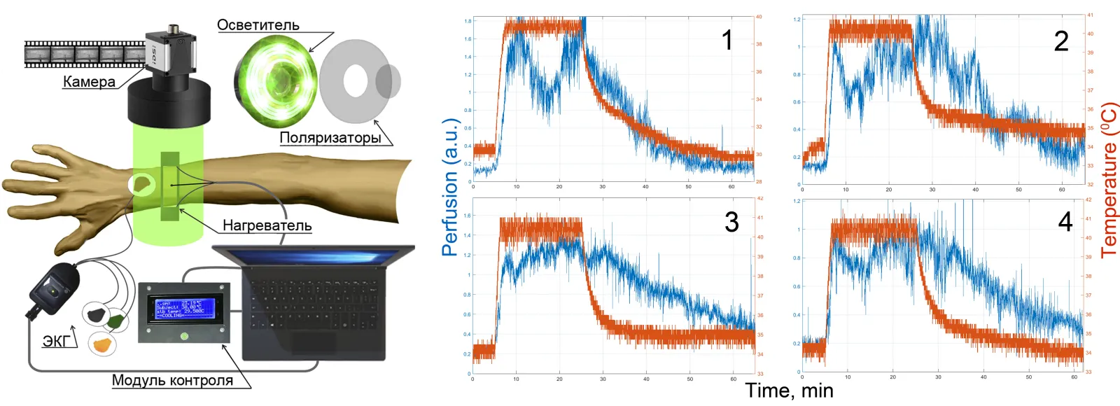 Суть процесса, получившего название «метод визуализирующей фотоплетизмографии» (ВФПГ), заключается в том, что с помощью нагрева ученые активизируют кровообращение на отдельном участке кожи и записывают видеоизображение в специальном свете, позволяющем получить информативную картинку. Полученный видеоряд анализируется с помощью современных IT-технологий, позволяющих оценить степень тонуса кровеносных сосудов пациента.