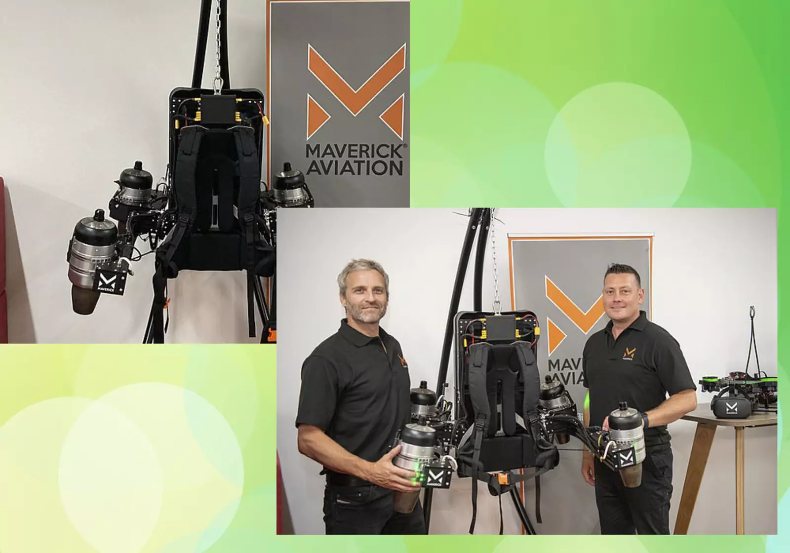 Устройство под названием Maverick Jetpack, по утверждению производителя, сделано из легких материалов, включая алюминий, титан и углеродное волокно. Ранец способен перемещаться со скоростью до 30 миль в час, в зависимости от задачи пилота.