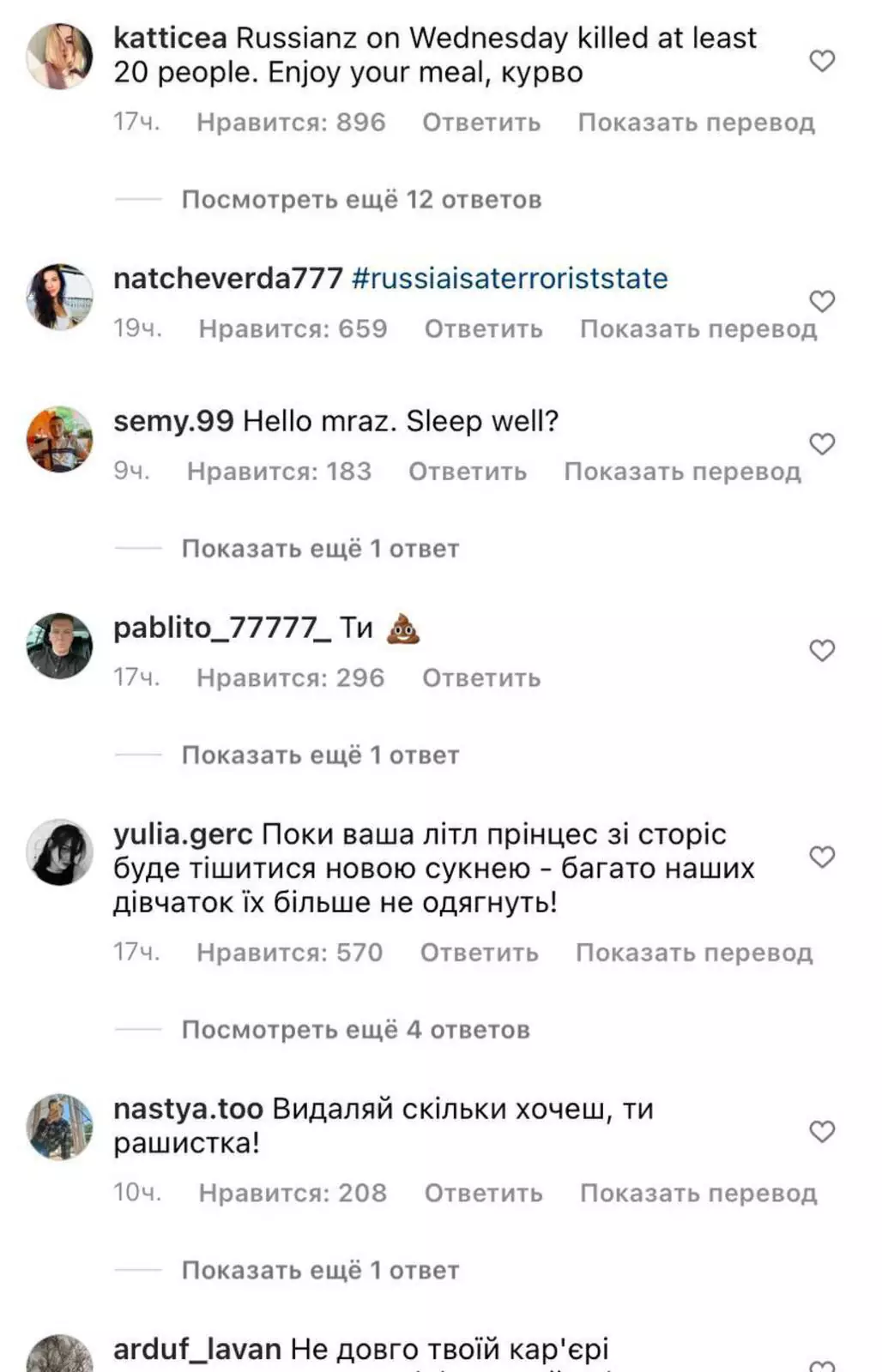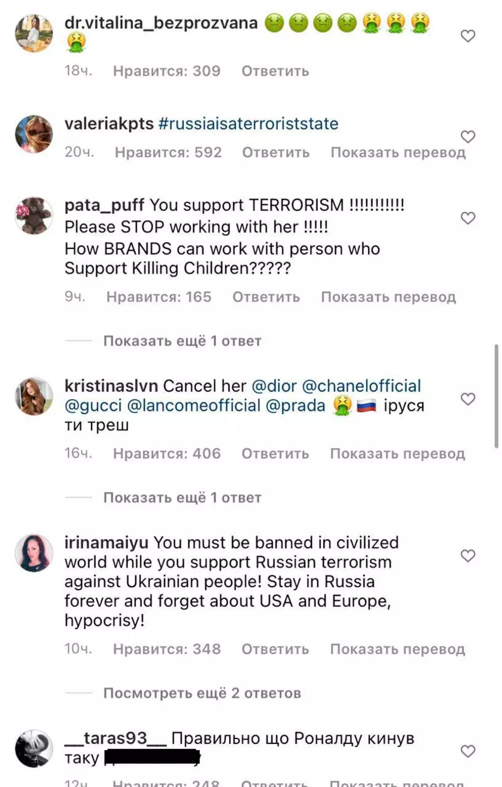 «Правильно, что Роналду кинул такую ***», — писали супермодели в комментариях возмущённые буквой Z украинцы.