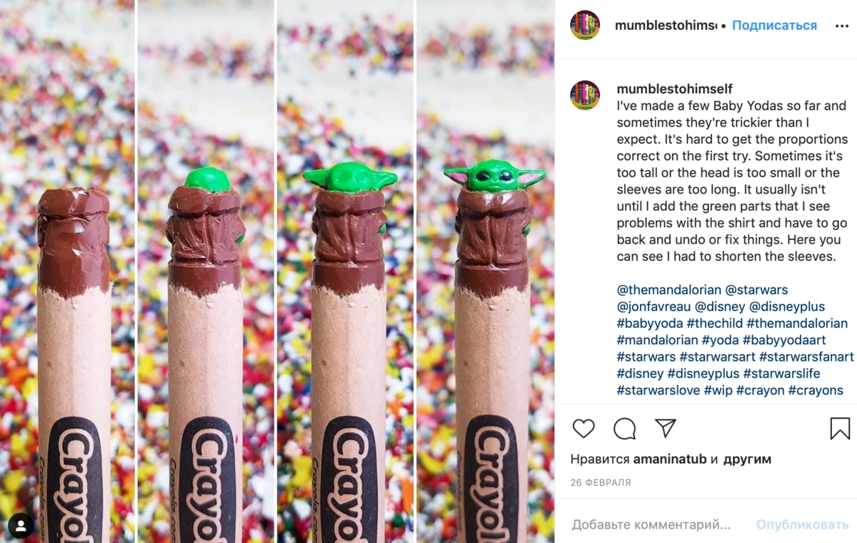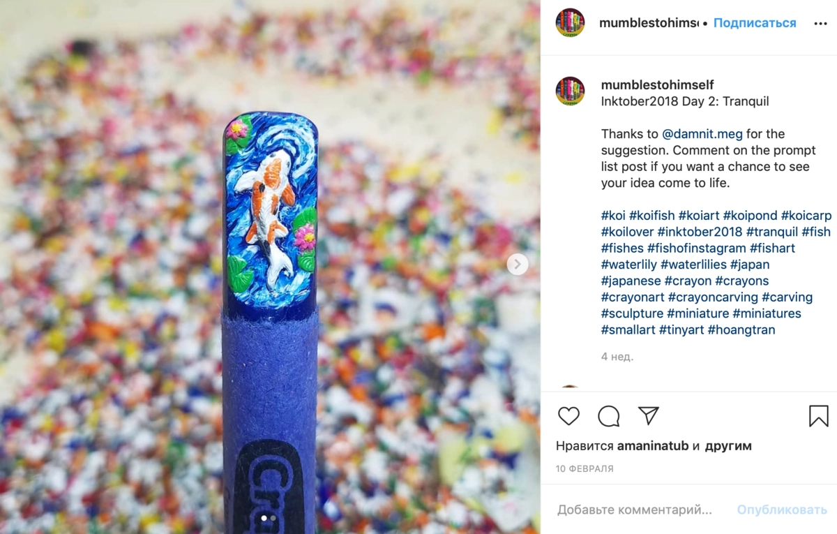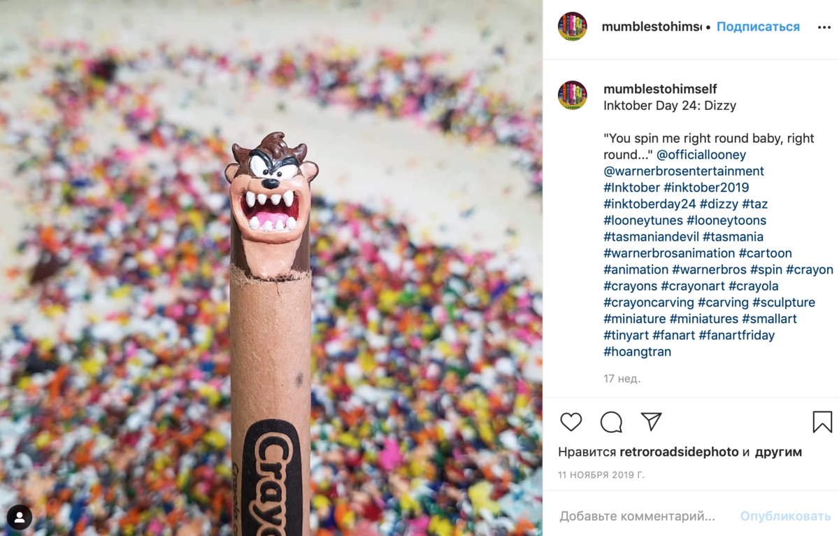 В конце концов он решил продавать свои работы онлайн и начал публиковать фотографии работ в Tumblr, с тех пор он добился неплохого успеха. Мастер смог доказать, что восковыми мелками можно не только рисовать, но и создавать крошечные скульптуры.