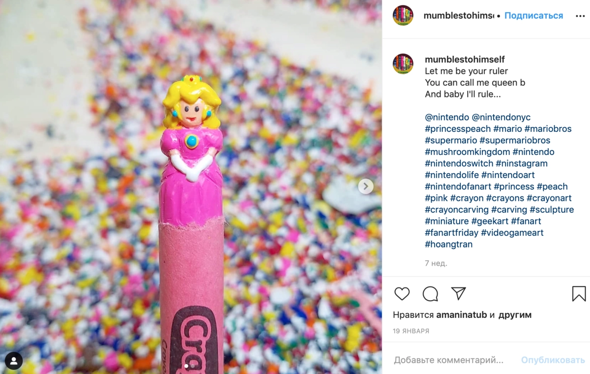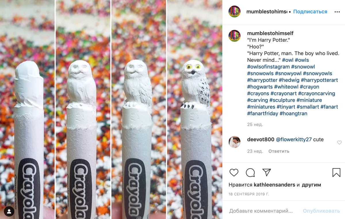 Хоанг Тран прославился в интернете тем, что превращает художественные принадлежности в искусство — он берет цветные карандаши, вырезает их и затем создает известных персонажей. Его работы обычно изображают его любимых персонажей из поп-культуры, и на сегодняшний день он делал скульптуры по самым интересным фильмам и мультфильмам.