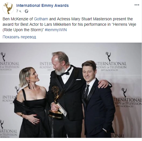 На прошедшей в Нью-Йорке 46-й церемонии вручения Международной премии «Эмми» (International Emmy Awards) лучшим актером был признан датчанин Ларс Миккельсен, известный по роли российского президента Виктора Петрова в сериале «Карточный домик».