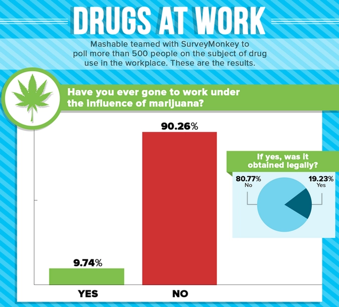 В ходе исследования эксперты изучали употребление работающими американцами не только марихуаны, но и отпускаемых по рецепту наркотиков. Согласно полученным данным, 9,7% американцев курят марихуану до того, как появляются в офисе на своем рабочем месте. При этом 81% приобретают свою марихуану незаконно.