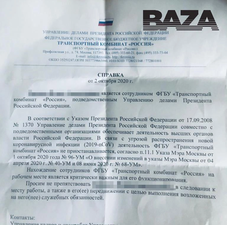 В связи с угрозой распространения новой коронавирусной инфекции деятельность предприятия не приостанавливается. Просим не препятствовать передвижениям с целью выполнения возложенных должностных обязанностей, — цитирует Baza текст документа.