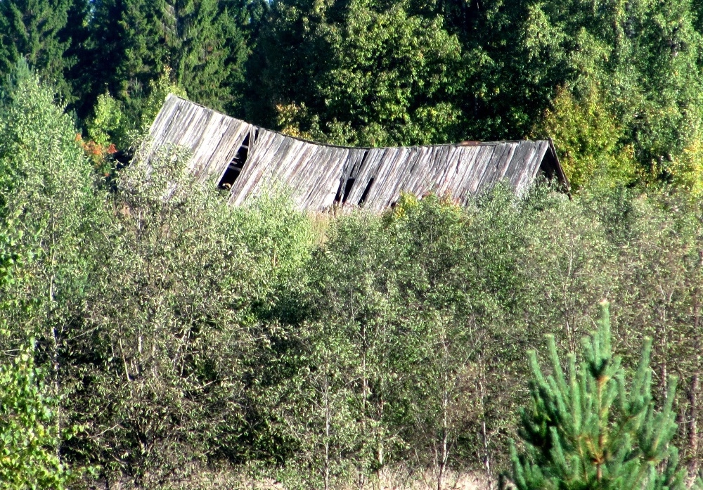 В глубине леса в некоторых местах видны остатки бараков, в которых жили заключённые, задействованные на строительстве Волго-Балтийского канала.
