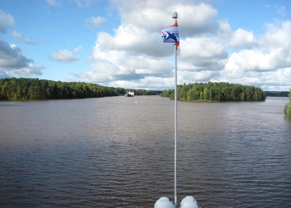 После Вытегорского шлюза — заключительные 15 километров канала, после чего теплоход выходит в огромное Онежское озеро, второй по величине пресноводный водоём Европы после Ладожского озера.