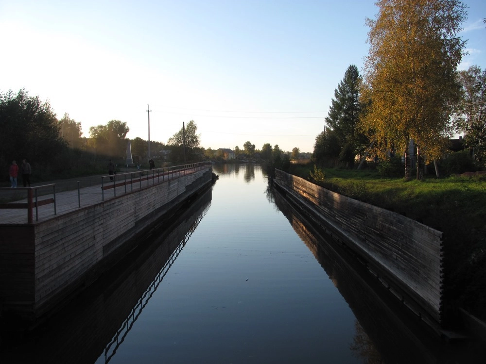 Водораздельный участок канала в этом месте проходит по бывшему руслу реки Вытегры.