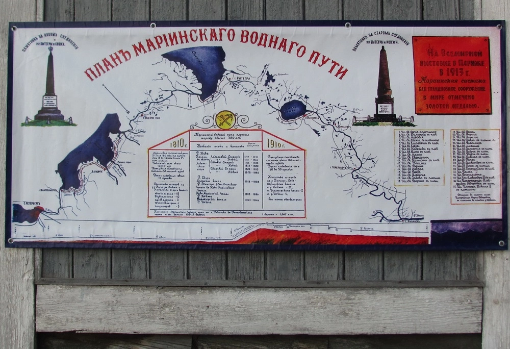 3. Мариинская водная система была открыта в 1810 году. Её трасса прошла по трассе нынешнего Волго-Балтийского пути: Волга — Шексна — Белое озеро — Ковжа — соединительный водораздельный канал — Вытегра — Онежское озеро — Свирь — Ладожское озеро — Нева. На старой Мариинке на участке между Волгой и Онежским озером было 28 деревянных шлюзов размерами 32×9 метров и глубиной 1.3 метра (на сегодняшнем Волго-Балте 7 шлюзов размерами 270×18 метров и глубиной 4 метра — 6 шлюзов на Онежском склоне и крупный Шекснинский гидроузел на Шексне).