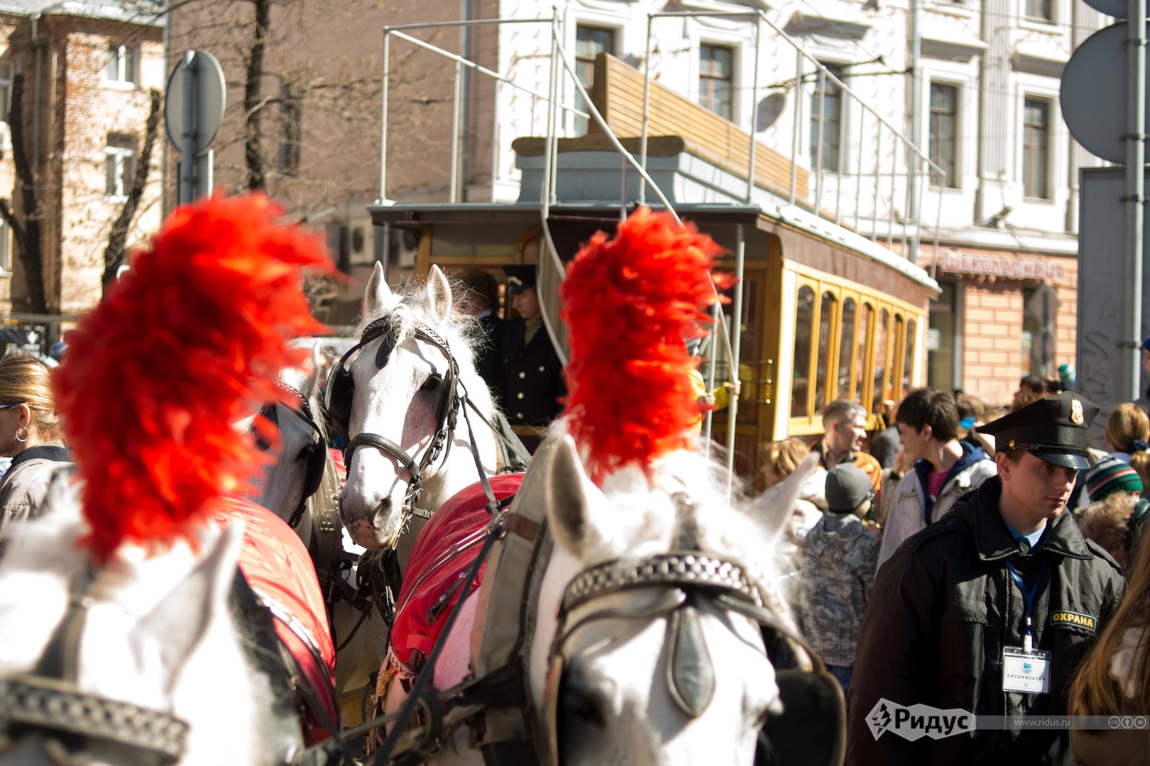 Солнечным и теплым весенним днем начищенные до блеска трамваи приехали на Чистопрудный бульвар. С одно стороны выстроились современные, а с другой ретро-трамваи, возглавляемые вагоном с конной тягой, тем с которого весной 1899 года началось трамвайное движение по Москве. Далее началась стремительная история развития трамвая.