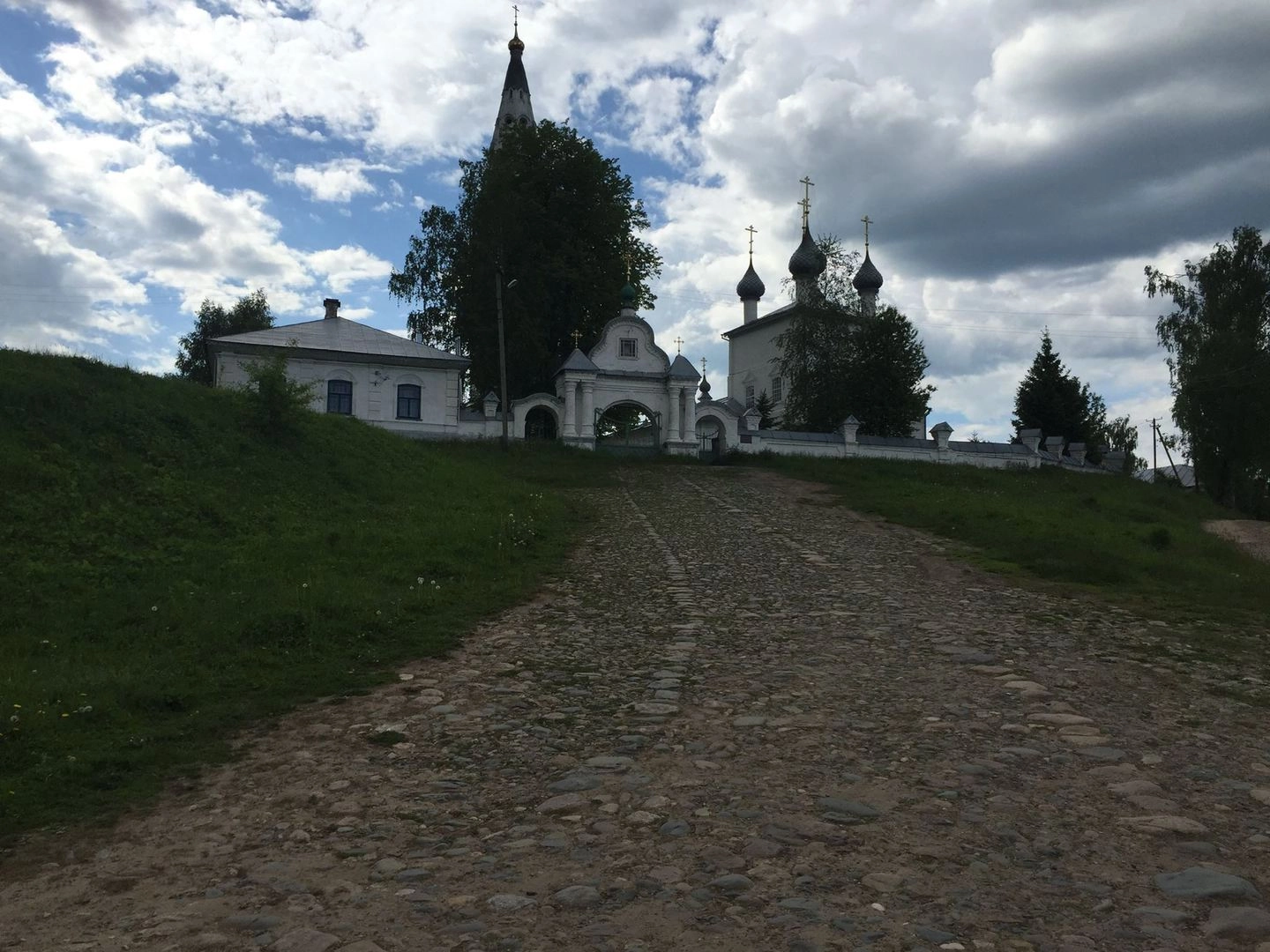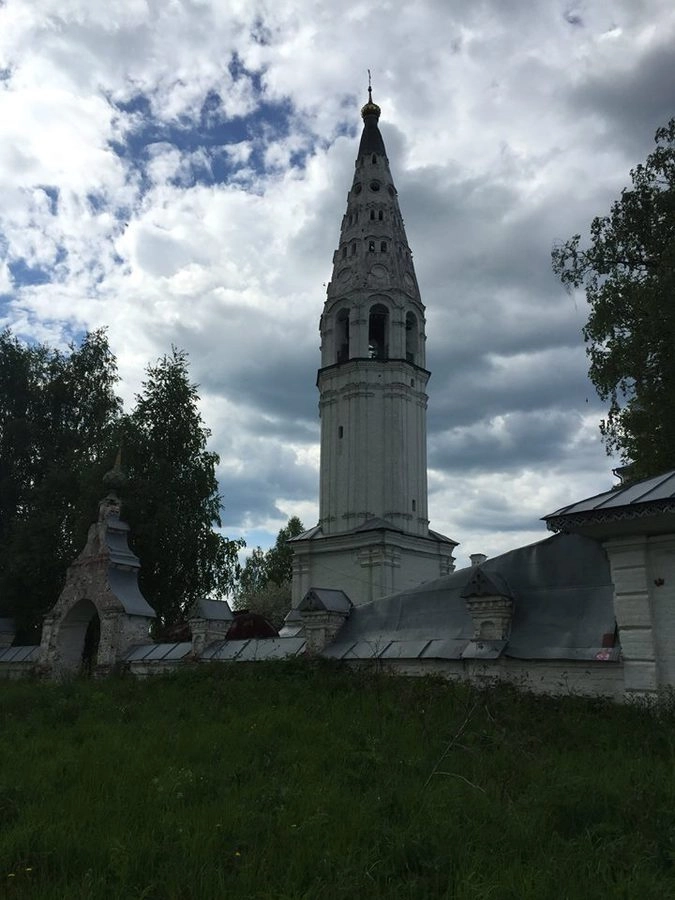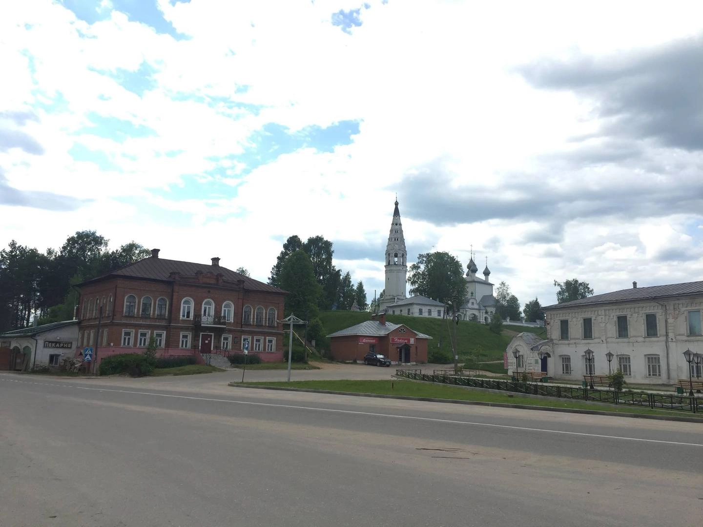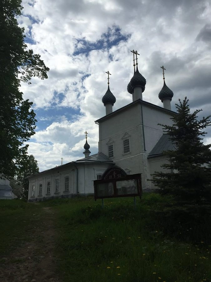 Центральную улицу венчает красивый Спасо-Преображенский собор с шатровой колокольней. Церковь эта построена в 1758 году на высокой искусственной насыпи. Когда мы приехали, храм не работал, зато на одном холме с ним располагался единственный частный деревенский дом, подвыпивший хозяин которого врубил на всю округу какую-то дикую итальянскую эстраду 70-х.
