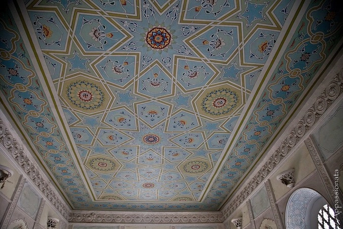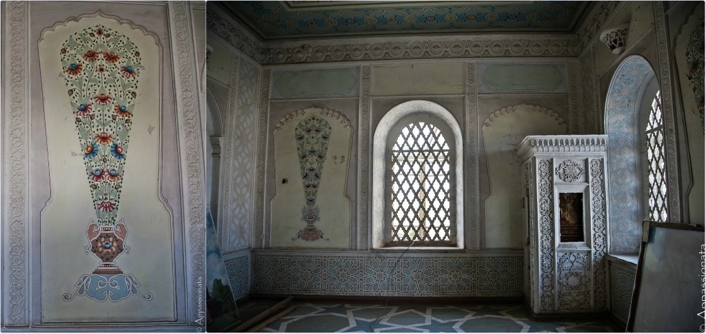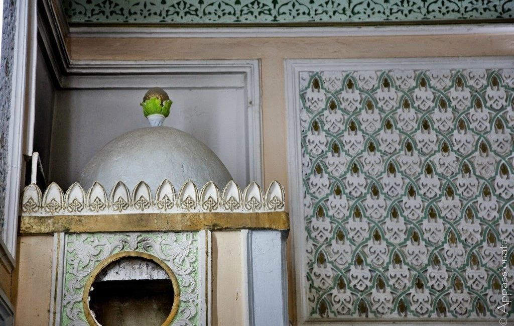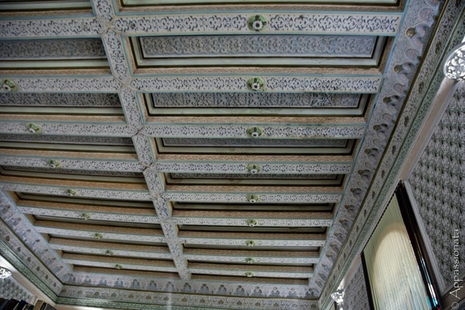 Мавританский стиль в сочетании с барокко и ампиром, реализованный в виде большого количества колонн, башен и куполов, придавал зданию более помпезный вид, чем даже дворец эмира в Бухаре. Помимо типично европейского стиля, в оформлении использовались и арабские мотивы. Стены дворца просто изобиловали лепниной.