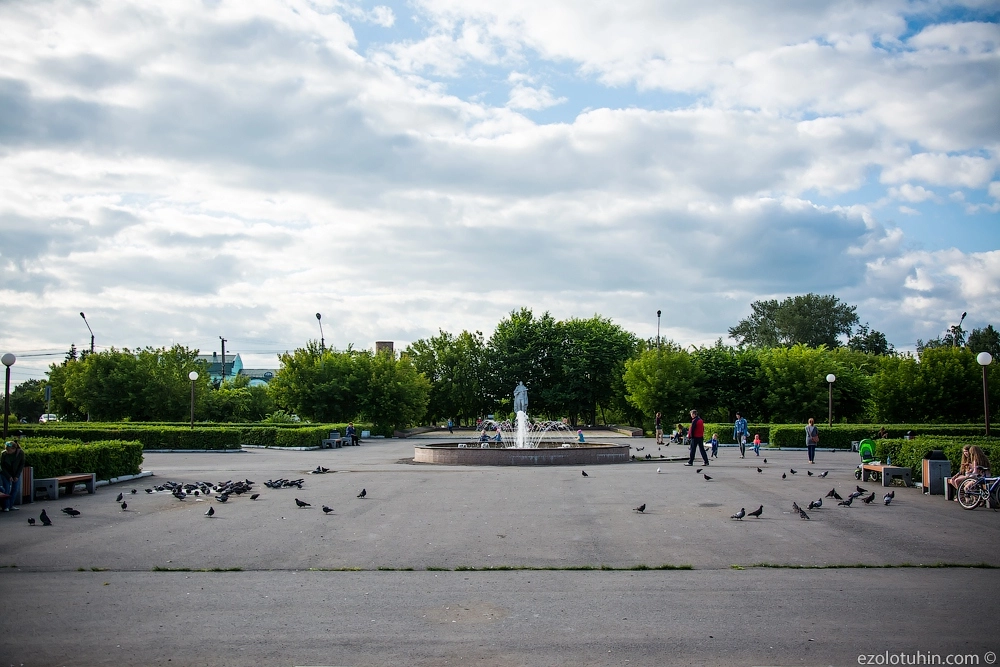 Памятник попробуйте догадаться чему. По плану из него еще должна бить струя…