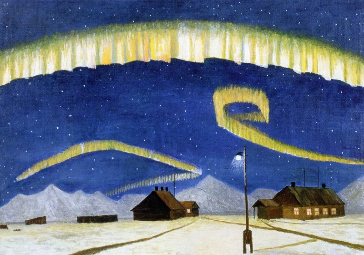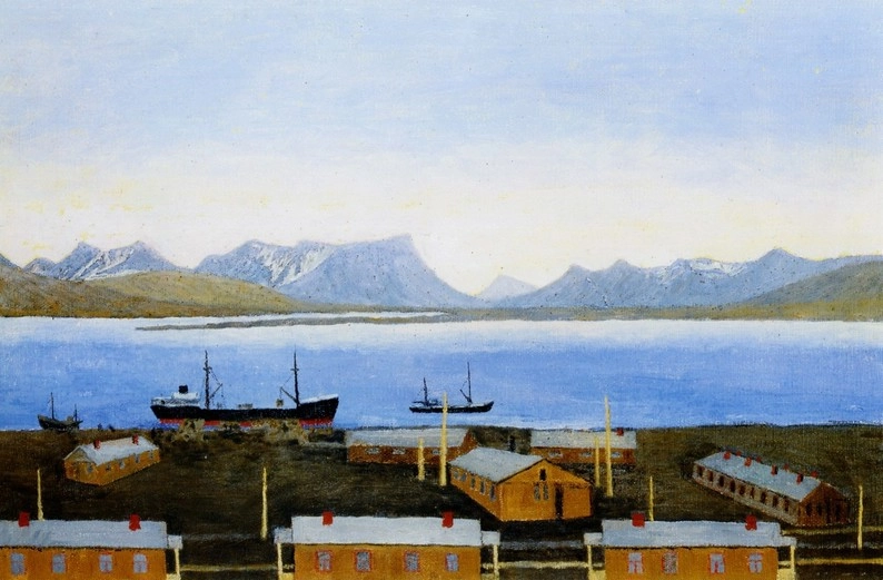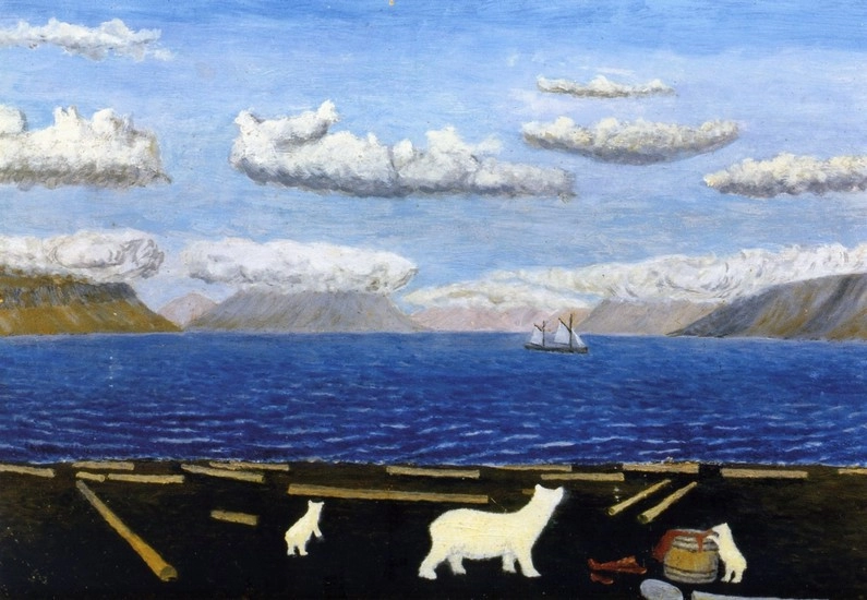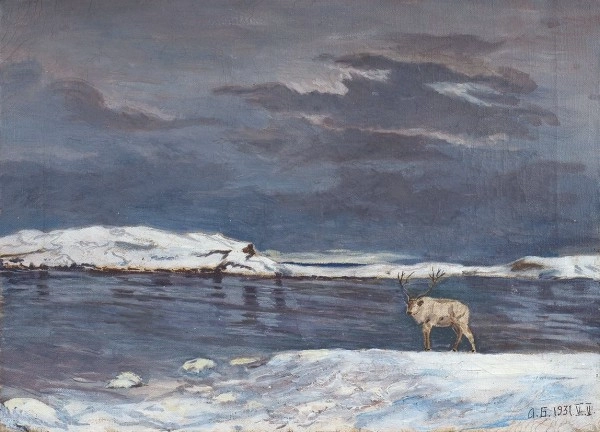 И биография такая удивительная. Зовут его Тыко Вылка. Он родился в Российской империи в 1886 году, в семье ненецких охотников. Начал писать картины еще до революции -- учился у художника Александра Борисова, которого занесло в тундру покататься на оленях. Степан Писахов (сказки которого я просто обожаю), познакомился с ним на Новой Земле около 1903−4 гг., подарил ему краски и восторгался его картинами.