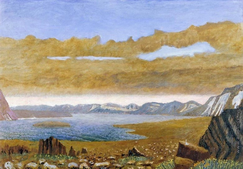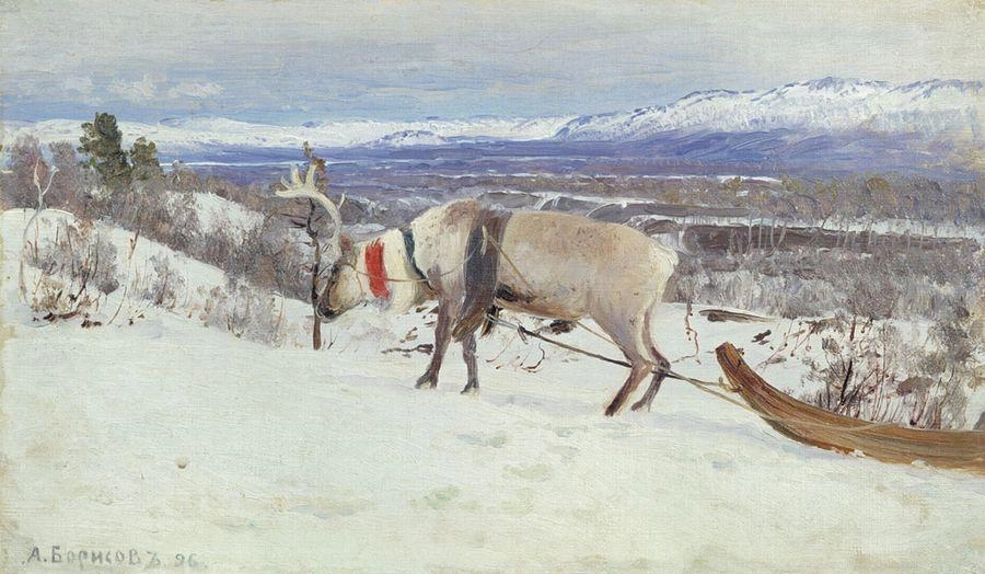А теперь давайте посмотрим для сравнения, что наваял тот самый катавшийся на оленях его первый учитель Александр Борисов, выпускник Императорской Академии художеств, ученик Шишкина и Куинджи, лауреат премий и медалей, и прочая и прочая. Те же самые места.