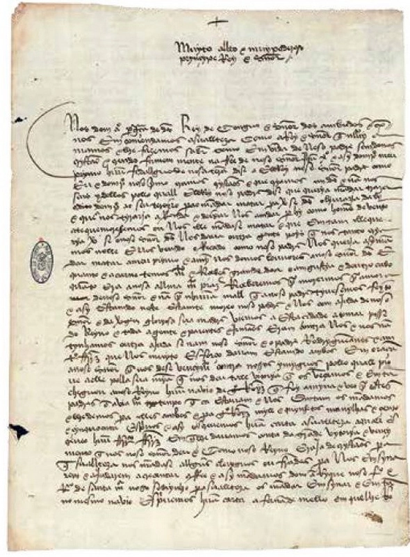 Письмо Аффонсу I португальскому королю Мануэлю I с сообщением о сожжении Большого дома идолов, 5 октября 1515 года. Источник: Kongo: Power and Majesty. Catalogue of the Metropolitan Museum of Art. — N.-Y., 2015. — P. 94