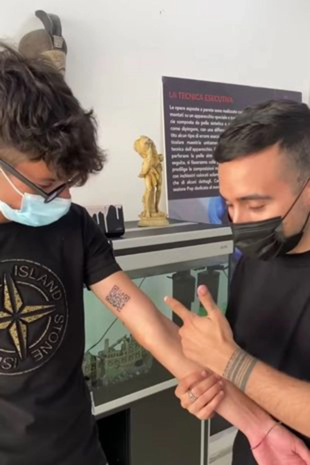 Известный итальянский тату-мастер набил своему клиенту QR-код на руке, который доказывает, что мужчина привит от коронавируса.