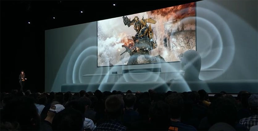 Впервые такая «фишка» появилась в кинотеатрах 5—7 лет назад, а теперь она доступна и дома. На презентации разработчики рассказали, что при наличие Apple TV можно устроить кинотеатр на дому.