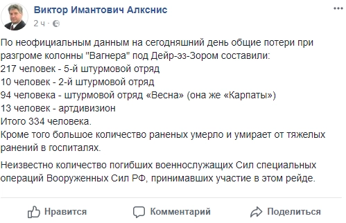 Итого 334 человека: бывший депутат назвал потери «ЧВК Вагнера» в Сирии