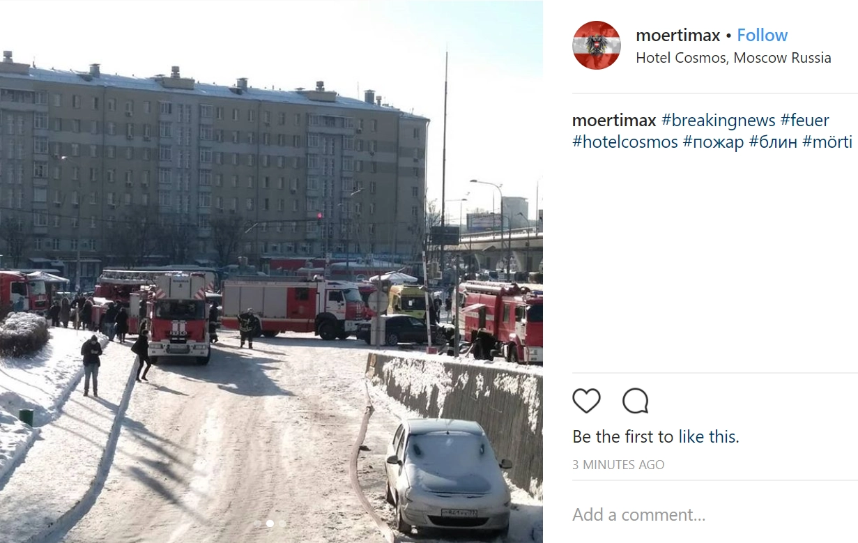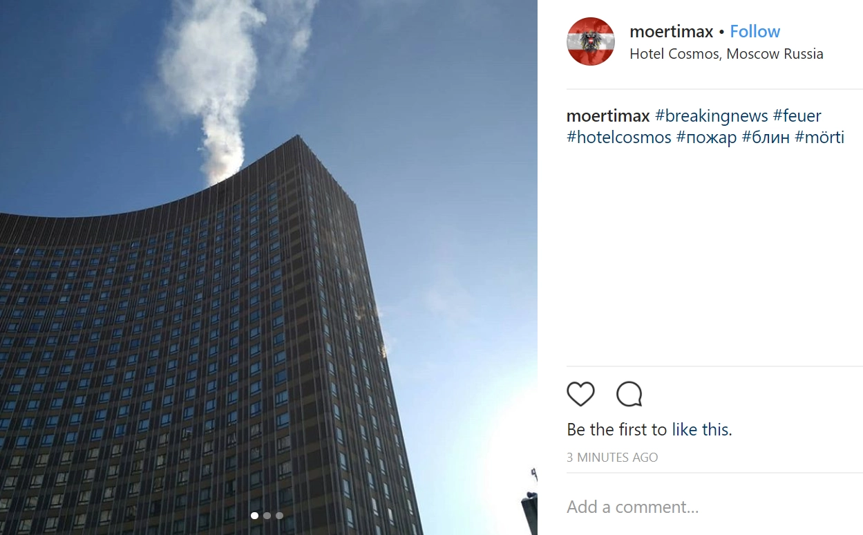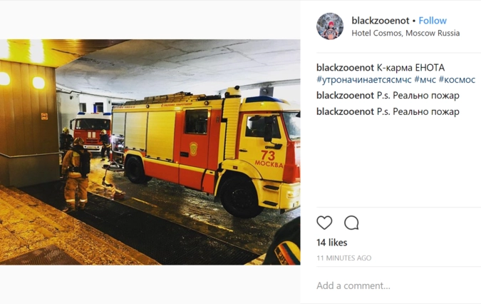 Из гостиницы «Космос» в Москве эвакуировали постояльцев из-за пожара