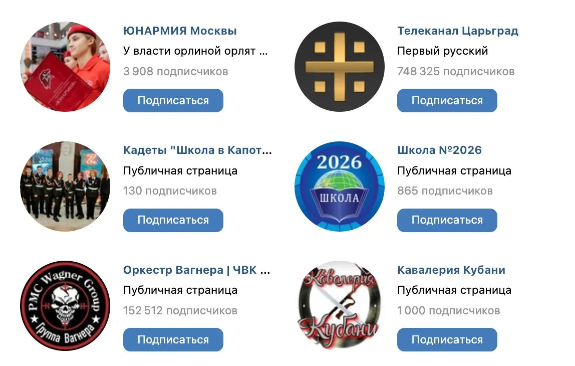Страницы в соцсетях Окопского в данный момент зарыты. Однако обитателям соцсетей удалось сделать скриншоты сообществ, в которых состоял педагог: в основном, это патриотические паблики и сообщества ЧВК «Вагнер».